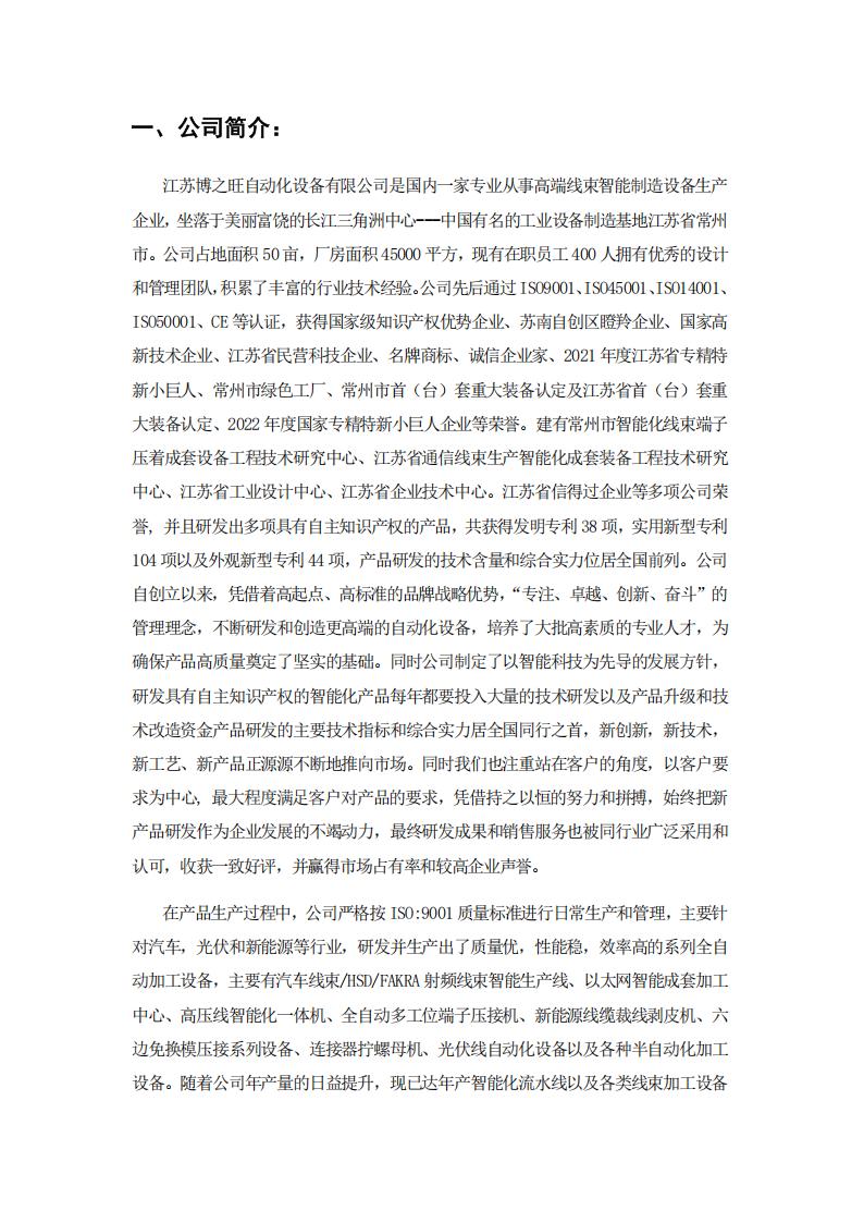 江蘇博之旺自動(dòng)化設(shè)備有限公司2024年社會(huì)責(zé)任報(bào)告